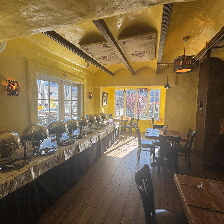 Aabha Indian Cuisine offers an enchanting dining experience with elegant indoor and outdoor seating, a fireplace, vegan options, and a pet-friendly patio. Ideal for romantic meals or special events, Aabha welcomes guests with warm hosts, authentic scents, and classic Indian music. The restaurant presents modern interpretations of regional Indian cuisine, using the finest ingredients. Enjoy the cozy, elegant ambiance, perfect for intimate occasions, complemented by live classical music.